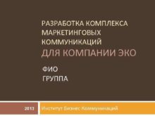 РАЗРАБОТКА КОМПЛЕКСА МАРКЕТИНГОВЫХ КОММУНИКАЦИЙ ДЛЯ КОМПАНИИ ЭКО ФИО