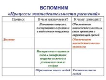 ВСПОМНИМ Процессы жизнедеятельности растений Процесс В чем заключается