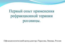 Первый опыт применения рефракционной терапии роговицы Офтальмологический центр