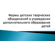 Формы детских творческих объединений в учреждении дополнительного образования