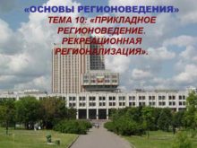 ОСНОВЫ РЕГИОНОВЕДЕНИЯ ТЕМА 10 ПРИКЛАДНОЕ РЕГИОНОВЕДЕНИЕ РЕКРЕАЦИОННАЯ