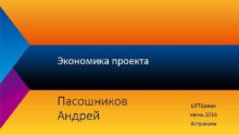 Экономика проекта Пасошников Андрей LIFTёрная июнь 2016 Астрахань