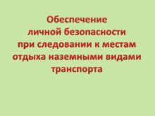 Обеспечение личной безопасности при следовании к местам отдыха