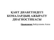 ҚАНТ ДИАБЕТІНДЕГІ КОМАЛАРДЫҢ АЖЫРАТУ ДИАГНОСТИКАСЫ Орындаған Байдуллаева Азиза