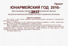 Проект ЮНАРМЕЙСКИЙ ГОД 20162017 ПЛАН ОСНОВНЫХ МЕРОПРИЯТИЙ ВСЕРОССИЙСКОГО