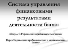 Система управления финансовыми результатами деятельности банка Модуль 1