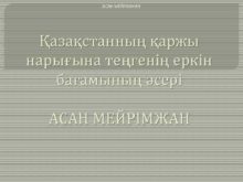 АСАН МЕЙРІМЖАН Қазақстанның қаржы нарығына теңгенің еркін бағамының