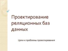 Проектирование реляционных баз данных Цели и проблемы проектирования
