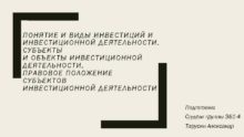 ПОНЯТИЕ И ВИДЫ ИНВЕСТИЦИЙ И ИНВЕСТИЦИОННОЙ ДЕЯТЕЛЬНОСТИ СУБЪЕКТЫ