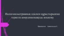 Полигонометриялық әдіспен құрастырылған торапта координаталарды анықтау Орындаған Амангельды