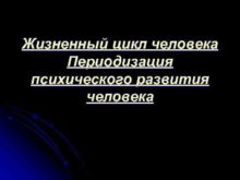 Жизненный цикл человека Периодизация психического развития человека