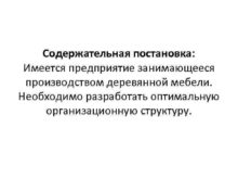 Содержательная постановка Имеется предприятие занимающееся производством деревянной мебели
