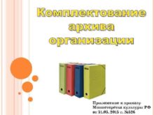 Комплектование архива организации Приложение к приказу Министерства культуры
