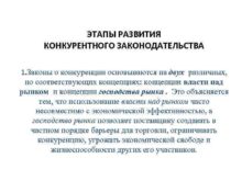 ЭТАПЫ РАЗВИТИЯ КОНКУРЕНТНОГО ЗАКОНОДАТЕЛЬСТВА 1 Законы о конкуренции