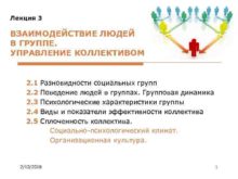 Лекция 3 ВЗАИМОДЕЙСТВИЕ ЛЮДЕЙ В ГРУППЕ УПРАВЛЕНИЕ КОЛЛЕКТИВОМ