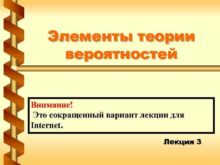 Элементы теории вероятностей Внимание Это сокращенный вариант лекции