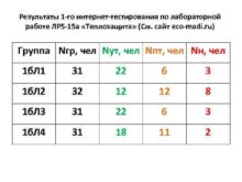 Результаты 1 -го интернет-тестирования по лабораторной работе ЛР