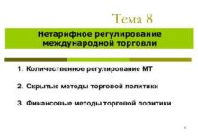 Тема 8 Нетарифное регулирование международной торговли 1 Количественное