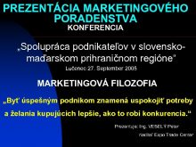 PREZENTÁCIA MARKETINGOVÉHO PORADENSTVA KONFERENCIA Spolupráca podnikateľov v slovenskomaďarskom
