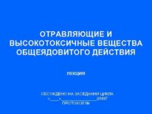 ОТРАВЛЯЮЩИЕ И ВЫСОКОТОКСИЧНЫЕ ВЕЩЕСТВА ОБЩЕЯДОВИТОГО ДЕЙСТВИЯ ЛЕКЦИЯ ОБСУЖДЕНО