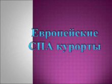 Европейские СПА курорты СПА комплекс