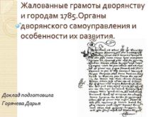 Жалованные грамоты дворянству и городам 1785 Органы дворянского
