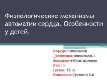 Физиологические механизмы автоматии сердца Особенности у детей Кафедра