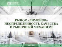 РЫНОК ЛИМОНОВ НЕОПРЕДЕЛЕННОСТЬ КАЧЕСТВА И РЫНОЧНЫЙ МЕХАНИЗМ Презентацию