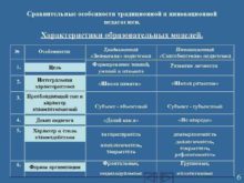Сравнительные особенности традиционной и инновационной педагогики Характеристики образовательных
