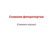 Снимаем фоторепортаж Снимаем хорошо Комфорт съемки обеспечат