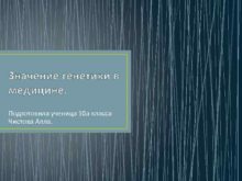 Значение генетики в медицине Подготовила ученица 10 а