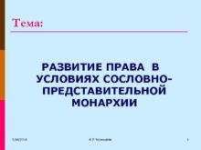 Тема РАЗВИТИЕ ПРАВА В УСЛОВИЯХ СОСЛОВНОПРЕДСТАВИТЕЛЬНОЙ МОНАРХИИ 2 10 2018