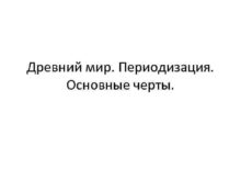 Древний мир Периодизация Основные черты Первобытное общество