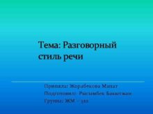 Тема Разговорный стиль речи Приняла Жорабекова Манат Подготовил