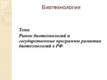 Биотехнология Тема Рынок биотехнологий и государственные программы развития