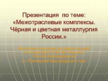 Презентация по теме Межотраслевые комплексы Чёрная и цветная