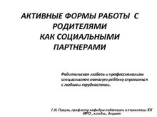 АКТИВНЫЕ ФОРМЫ РАБОТЫ С РОДИТЕЛЯМИ КАК СОЦИАЛЬНЫМИ ПАРТНЕРАМИ