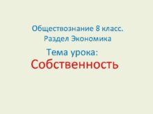 Обществознание 8 класс Раздел Экономика Тема урока Собственность