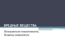 ВРЕДНЫЕ ВЕЩЕСТВА Показатели токсичности Классы опасности ОПРЕДЕЛЕНИЕ
