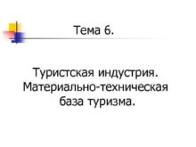 Тема 6 Туристская индустрия Материально-техническая база туризма