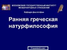 МОСКОВСКИЙ ГОСУДАРСТВЕННЫЙ ИНСТИТУТ МЕЖДУНАРОДНЫХ ОТНОШЕНИЙ Кафедра философии Ранняя