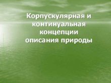 Корпускулярная и континуальная концепции описания природы Корпускулярная