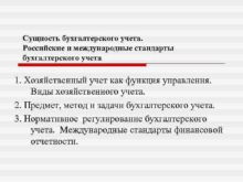 Сущность бухгалтерского учета Российские и международные стандарты бухгалтерского