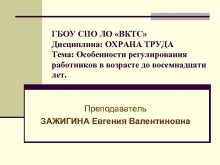 ГБОУ СПО ЛО ВКТС Дисциплина ОХРАНА ТРУДА Тема