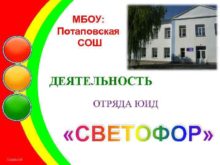 МБОУ Потаповская СОШ ДЕЯТЕЛЬНОСТЬ ОТРЯДА ЮИД СВЕТОФОР