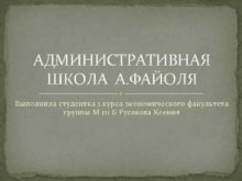 АДМИНИСТРАТИВНАЯ ШКОЛА А ФАЙОЛЯ Выполнила студентка 1 курса