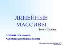 ЛИНЕЙНЫЕ МАССИВЫ Турбо Паскаль Описание типа массив