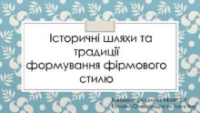 Історичні шляхи та традиції формування фірмового стилю Виконали