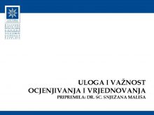 ULOGA I VAŽNOST OCJENJIVANJA I VRJEDNOVANJA PRIPREMILA DR