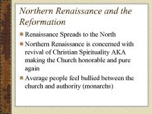 Northern Renaissance and the Reformation Renaissance Spreads to
